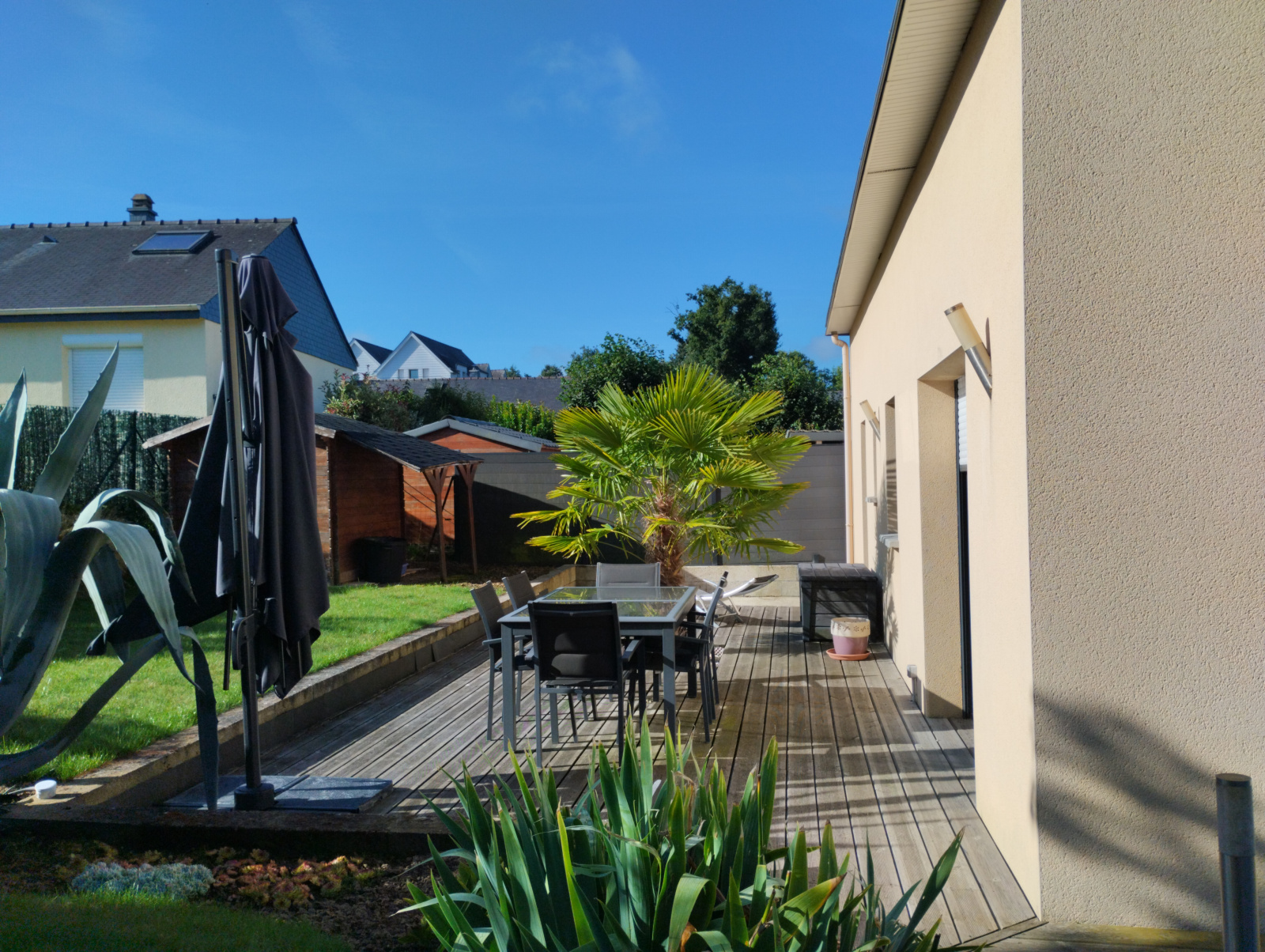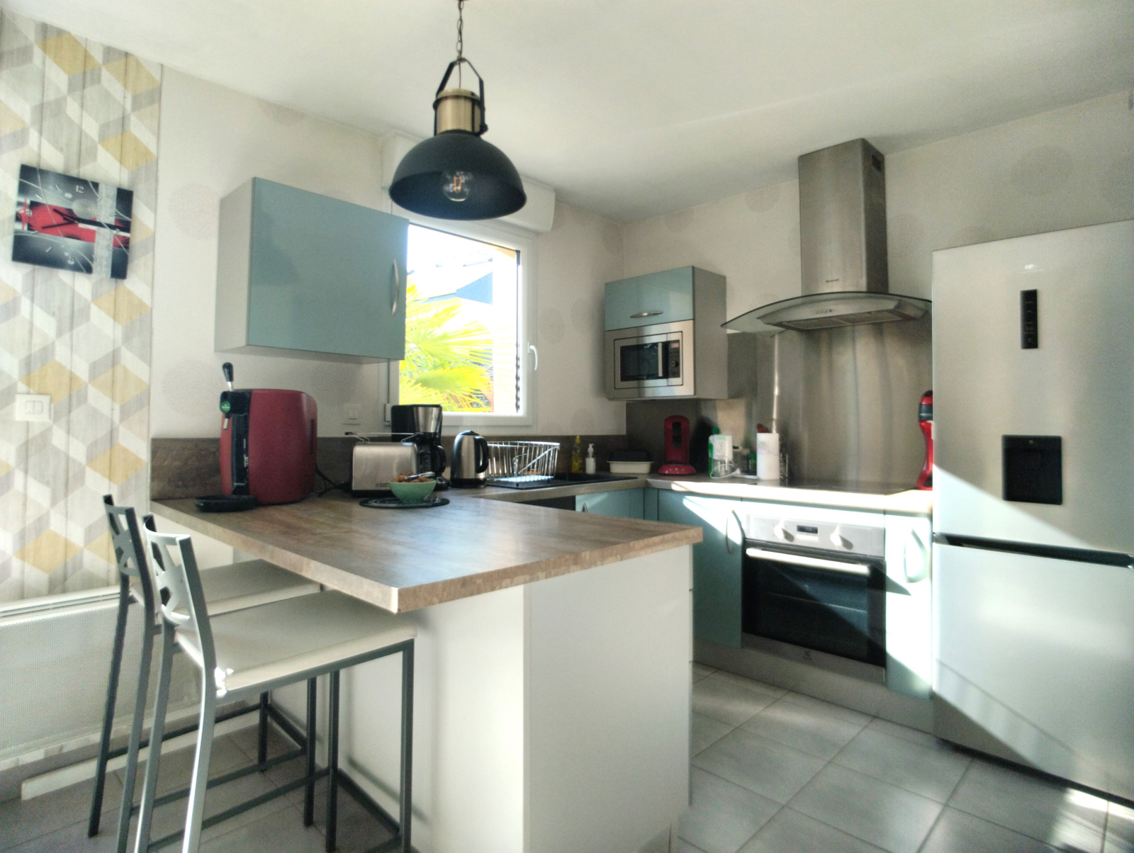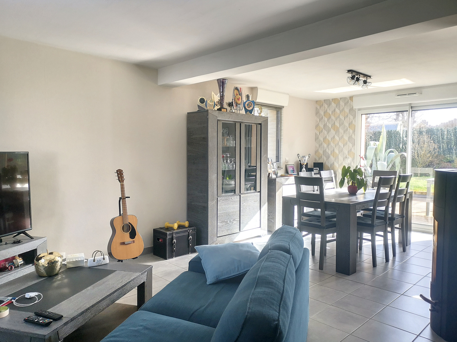 C'est en fond d'impasse, sur un joli terrain de près de 400m², parfaitement entretenu que se situe cette maison de 2012. L'agencement moderne et judicieux vous permettra de vous y projetter aisément. L'entrée avec placard ouvre sur un salon séjour lumineux et sa cuisine ouverte aménagée et équipée. La terrasse exposée Sud-Est vous permettra de déjeuner à l'extérieur en toute tranquillité. En hiver, vous apprécierez également la chaleur du poêle à bois.